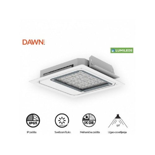 | Karakteristike | Nazivni Napon: 200-277 V AC Nazivna Snaga: 100 W Temperatura Boje Svetlosti: 6000 K Svetlosni Fluks: 14000 Lm Trafo (Drajver): Sosen Vrsta LEDa: LUMILEDs diode Materijal: Aluminijum Dimenzije: Širina - 412mm, Dužina - 449mm, Dubina - 97mm Ugao Rasipanja Svetlosti: 90° Indeks Reprodukcije Boje (CRI): ≥80(Ra) Stepen Mehaničke Zaštite: IK 08 IP Zaštita: IP 65 |