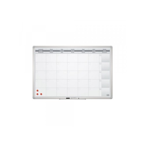 | Specifikacija | – Mesečna planer tabla – Bela magnetna podloga sa nedeljnim rasporedom – Aluminijumski ram – Plastični ćoškovi – Dimenzija: 60x90cm – U pakovanju i set za montažu |