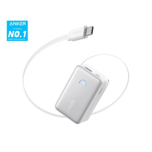 ANKER Nano Power Bank 10000mAh, 45W, sa ugrađenim USB-C kablom na izvlačenje, beli