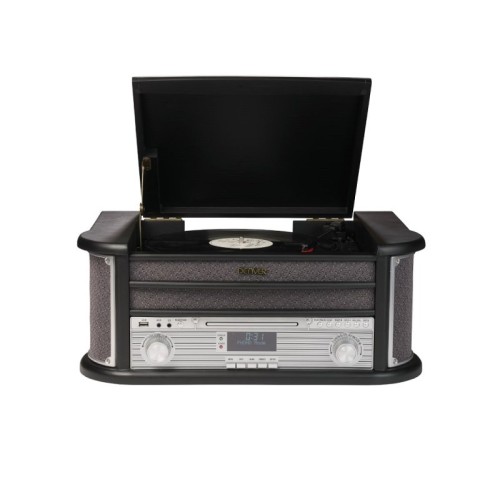 | Karakteristike | Bluetooth: Ne Brzine: 33 1/3, 45, 78 o/min Tip kertridža: Keramički sa ugrađenom iglom Snaga: 2 x 2.5W Tip konektora: USB, AUX Priključci: AUX (na prednjoj strani) USB Ulaz za slušalice Opšte karakteristike: Čipset: JINRUI C912 LCD displej plave boje DAB+/FM Radio Kasetofon CD plejer sa podrškom za MP3 USB MP3 reprodukcija USB snimanje Dimenzije: 51.5 x 35 x 22 cm |