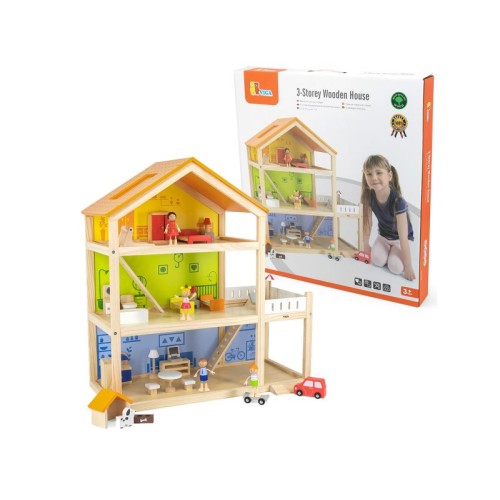 Karakteristike Sa svojim živopisnim bojama, detaljima i prostorom za lutke i nameštaj, ova kuća pruža neograničene mogućnosti za maštovitu igru. Izrađena od visokokvalitetnog drveta, ova kuća je trajna i otporna, pružajući deci bezbroj sati zabave.