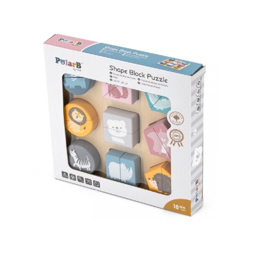 | Karakteristike | Parna umetaljka u obliku različitih geometrijskih tela sa oslikanim divljim životinjama: slon, lisica, lav, meda, veverica, zebra, nosorog, jež i krokodil. Set sadrži drveno postolje i 9 različitih parova za sklapanje i umetanje. Dimenzija proizvoda: 200x200x25mm |